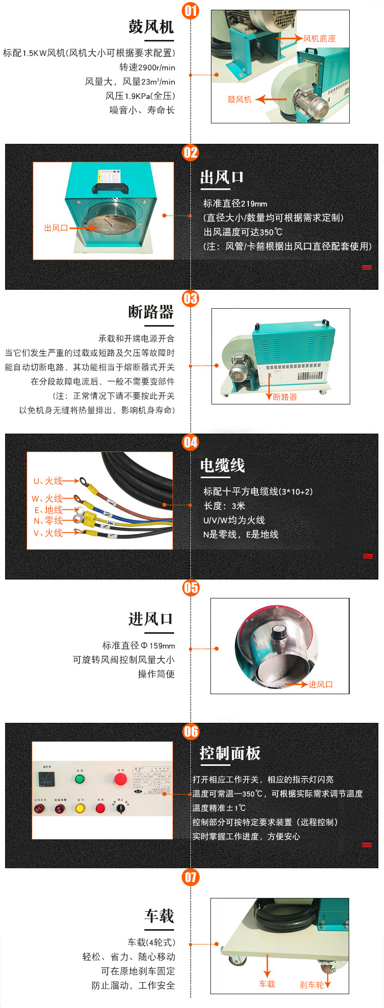 产品功能: 高温热风、热风生发、环保热源、350℃高温热风